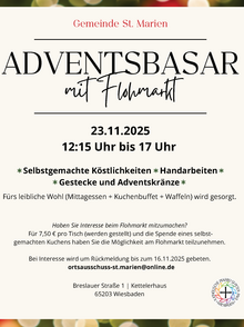 Adventsbasar am 23. November 2025, 12:15 Uhr bis 17 Uhr in St. Marien