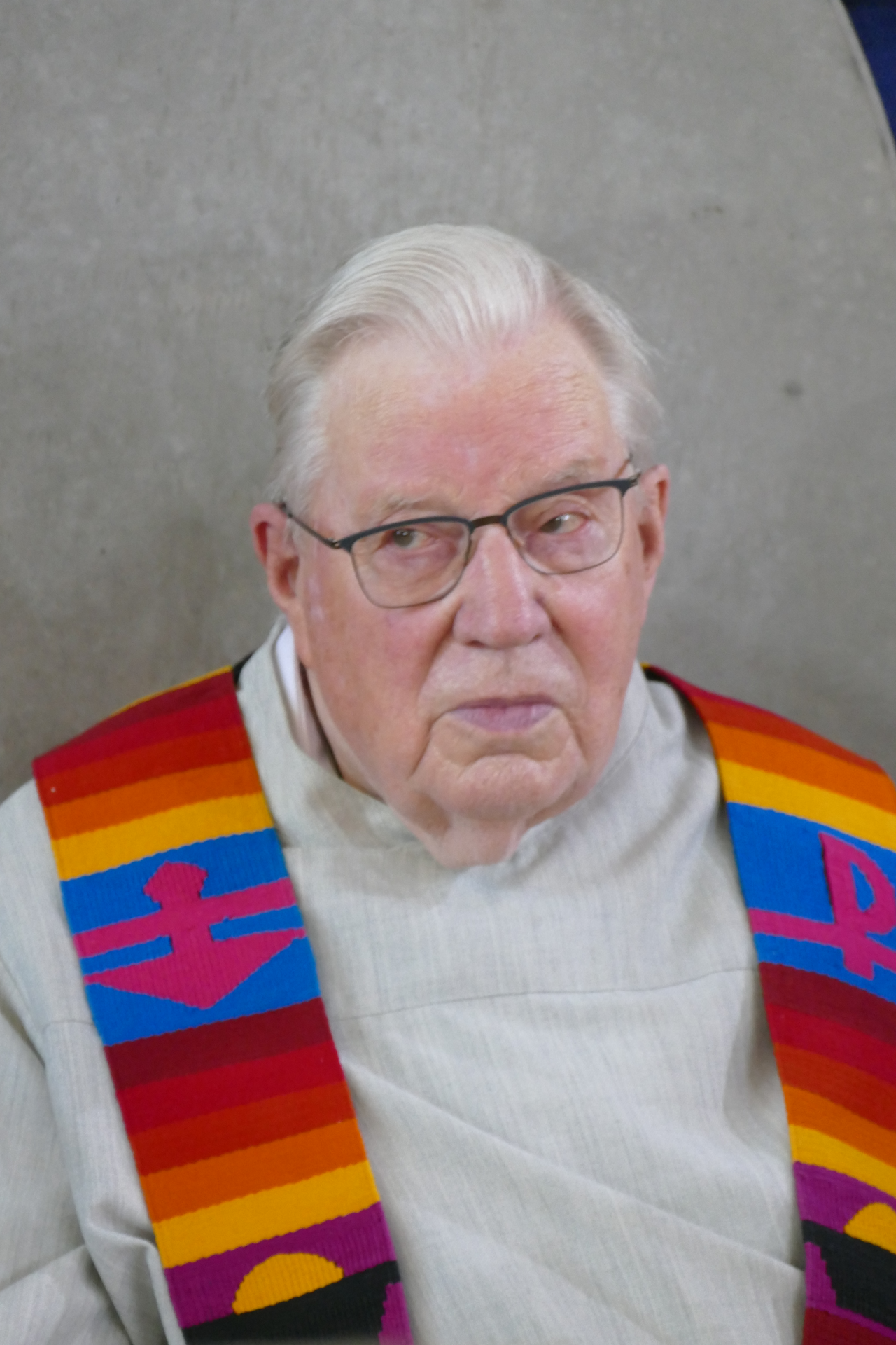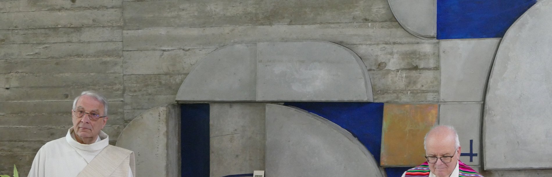 Den Festgottesdienst zelebrierte ein langjähriger Weggefährte, Pater Helmut Schlegel, assistiert von Diakon Becker. Pfarrer Heimburger wurde seinerzeit durch das 2. Vatikanische Konzil geprägt, quasi ein „68iger“ in der katholischen Kirche. Daher hatte er sich eine weibliche Stimme für die Predigt gewünscht – nach Kirchenrecht dürfen in der Messfeier allerdings nur Priester predigen, was Frauen von diesem Tun per se ausschließt. So wurde die Form einer kirchenrechtlich unbedenklichen Dialog-Predigt gewählt, in der sich Pater Schlegel mit Ricarda Moufang wechselseitig „die Bälle zuspielte“ bei der Erörterung der Frage, welche Rolle die Frau in der katholischen Kirche spielt und eigentlich spielen sollte. Eine derzeit im Synodalen Weg hochbrisante Fragestellung. Da muss es bei einigen Hardlinern wohl mächtig „in den Ohren“ geklingelt haben.