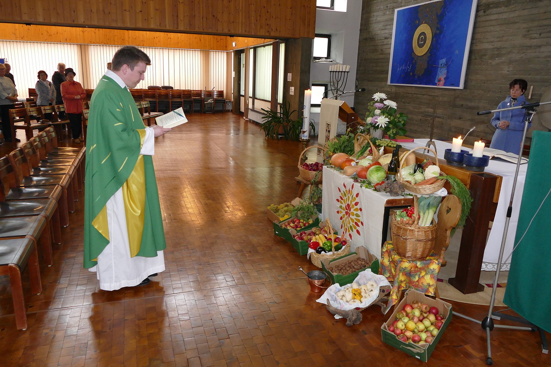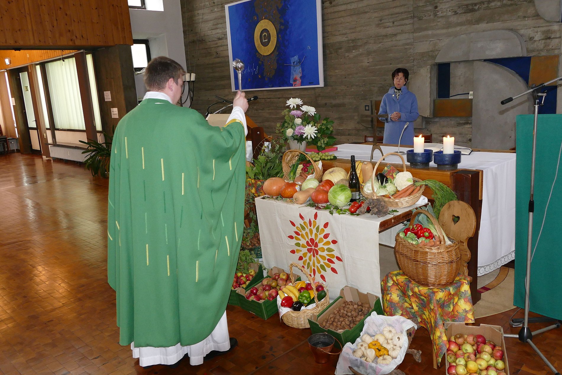 So auch in diesem Jahr. Fleißige Helfer hatten wieder einen schönen Erntedank-Altar mit Früchten der Gärten und Felder aufgebaut. Im Gottesdienst segnete Pfarrer Ginter diese Früchte, von denen ein Teil anschließend gegen eine Spende von den Gemeindemitgliedern mitgenommen wurden und in den nächsten Tagen in den Klarenthaler Kochtöpfen landen.