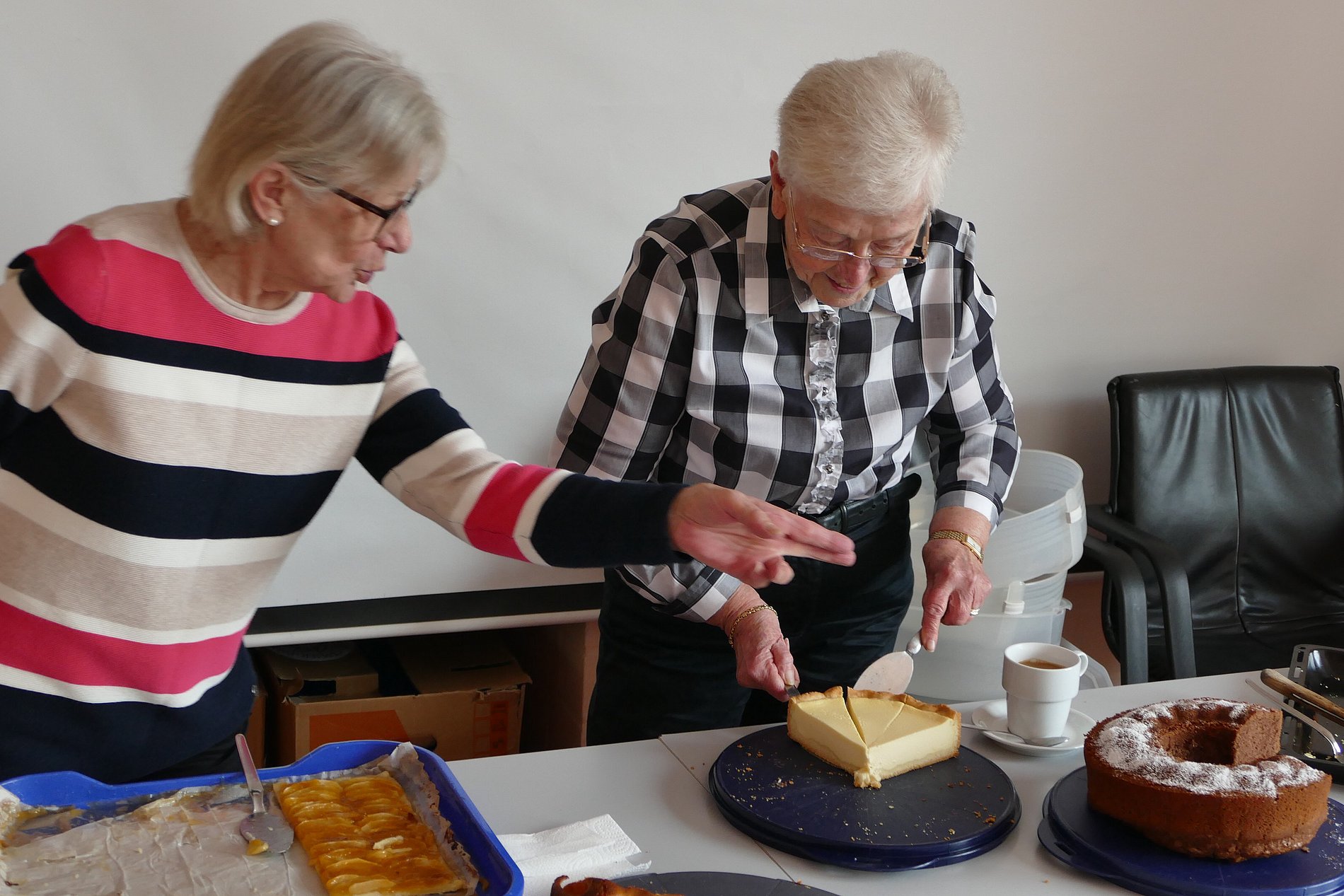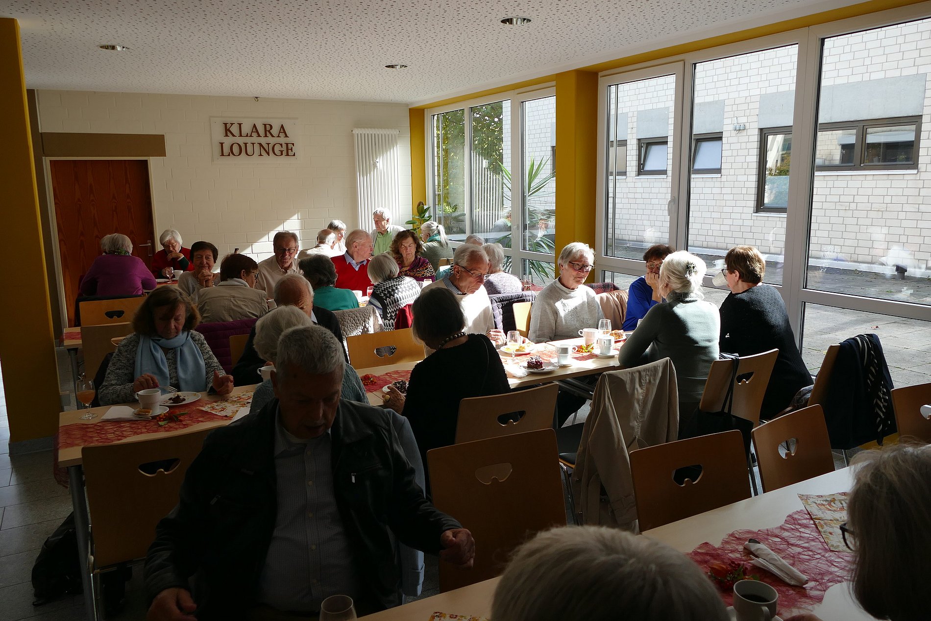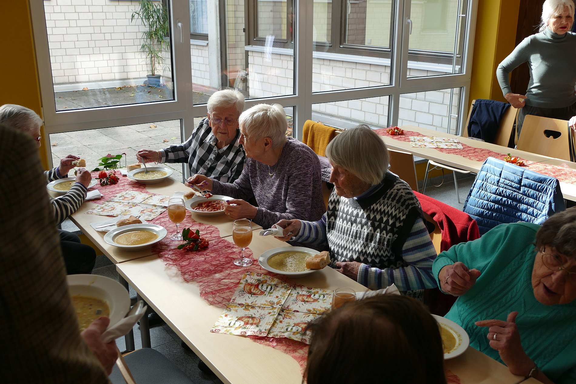 Der Festausschuss von St. Klara hatte vier unterschiedliche Suppen vorbereitet, unsere emsigen Kuchenbäckerinnen sechs leckere Kuchen beigesteuert und Marktbeschicker Johannes Leib vom Wochenmarkt in Kohlheck hatte neun Liter Federweißen gespendet, der die Stimmung der Gemeindemitglieder merklich steigen ließ. So waren es drei beschwingte und kommunikative Stunden, in denen man bei Speis und Trank zusammensaß und die Gemeinschaft innerhalb der Kirchortgemeinde pflegte.