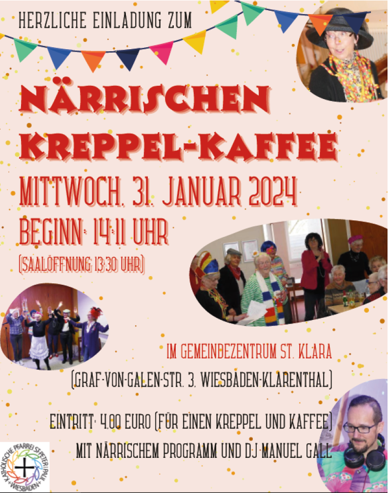 18:00 Uhr St. Josef (Kaplan Schuh), St. Klara (Wortgottesfeier), St. Georg und Katharina (Pfarrer Schmitt), St. Kilian (Pfarrer Ginter)