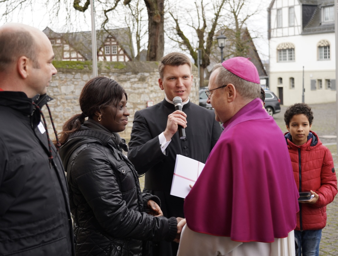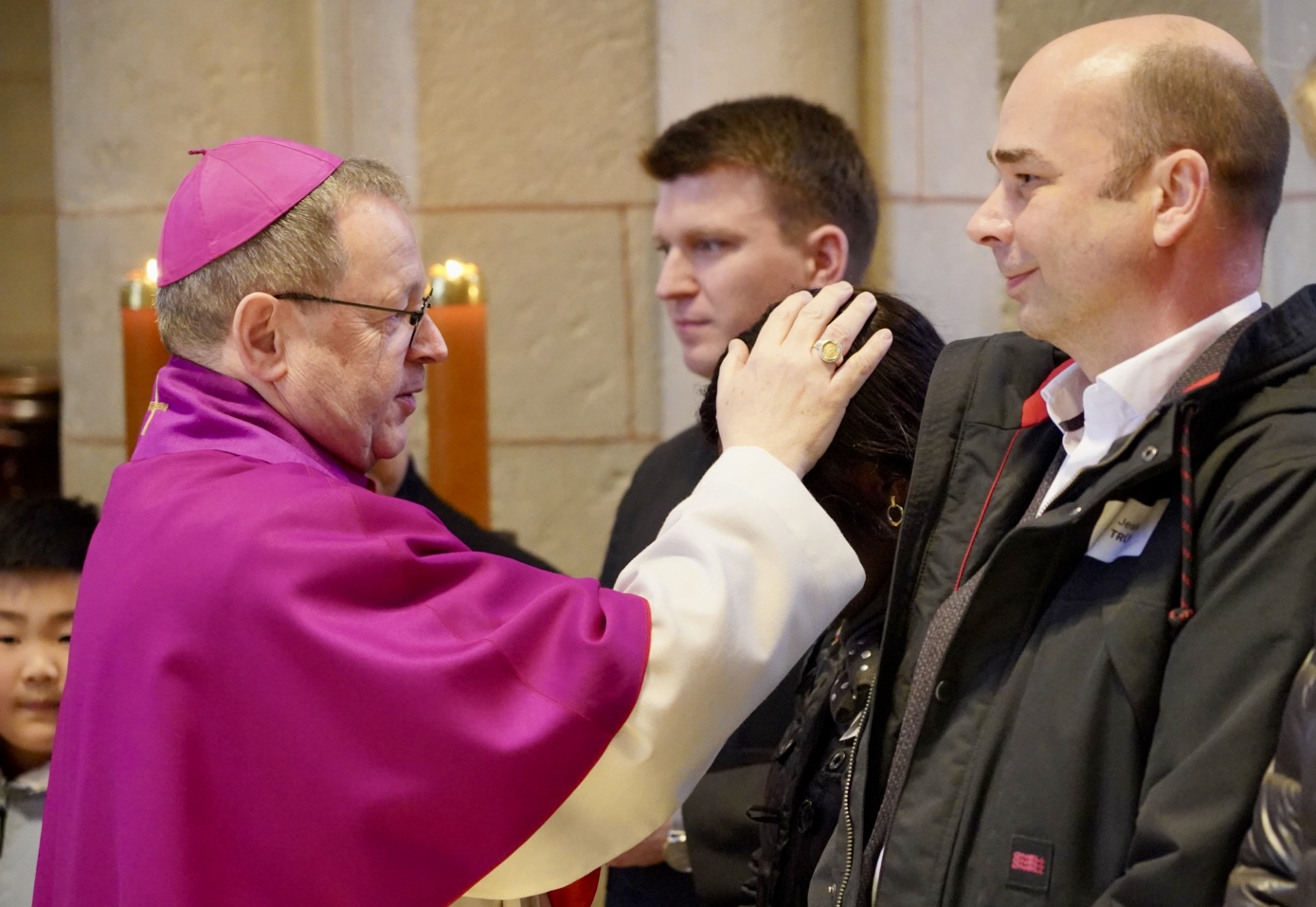 Am ersten Fastensonntag waren wir gemeinsam bei dem beeindruckenden Gottesdienst im Limburger Dom, zudem der Bischof eingeladen hat. Vor der Tür der Kathedrale wurden die Taufbewerber begrüßt und haben ein Empfehlungsschreiben zur Taufzulassung aus ihrer Pfarrei mitgebracht. Nach alter apostolischer Tradition ist der Bischof der eigentliche Taufspender. In der Kirche spendete dann der Bischof jedem einzelnen einen Segen für den Weg bis zur Taufe. Den Priestern erteilte er die Erlaubnis und Vollmacht die Sakramente der Taufe, Firmung und Eucharistie den Katechumenen in der Osternacht zu spenden. Sie sind herzlich eingeladen unsere Katechumenen Carole und Jesko im Gebet zu begleiten! Vielen Dank!