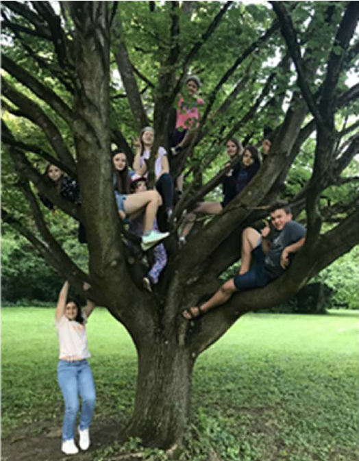 Bei einem Kennenlernspiel waren Taktik und Kommunikation gefragt, damit zum Schluss alle am vorgesehenen Platz standen. Danach ging es direkt weiter: Wer wollte, konnte auf der Slackline oder beim Torwand-Schießen seine Geschicklichkeit beweisen. Da die großzügige Gartenanlage der Schönstatt-Kapelle sehr viel Platz bietet, konnte gerannt, getobt und auf Bäume geklettert werden.