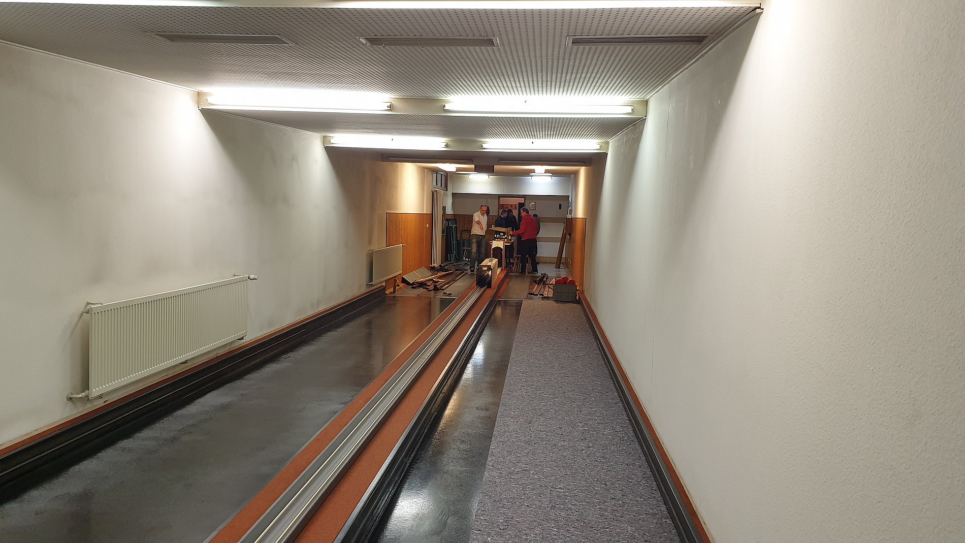 Die verbleibenden Räume bekommen einen neuen Zweck zugeordnet. Der Katechumenatsraum wird Kirchortbüro. Die Kegelbahn ist Lager und neuer Treffpunkt der 78er. Die Halle und die Küche bleiben uns für Vermietungen, was auch die Bewohner des Gräselbergs freut. Toiletten bleiben der Gemeinde an der Kegelbahn und in der Halle erhalten.