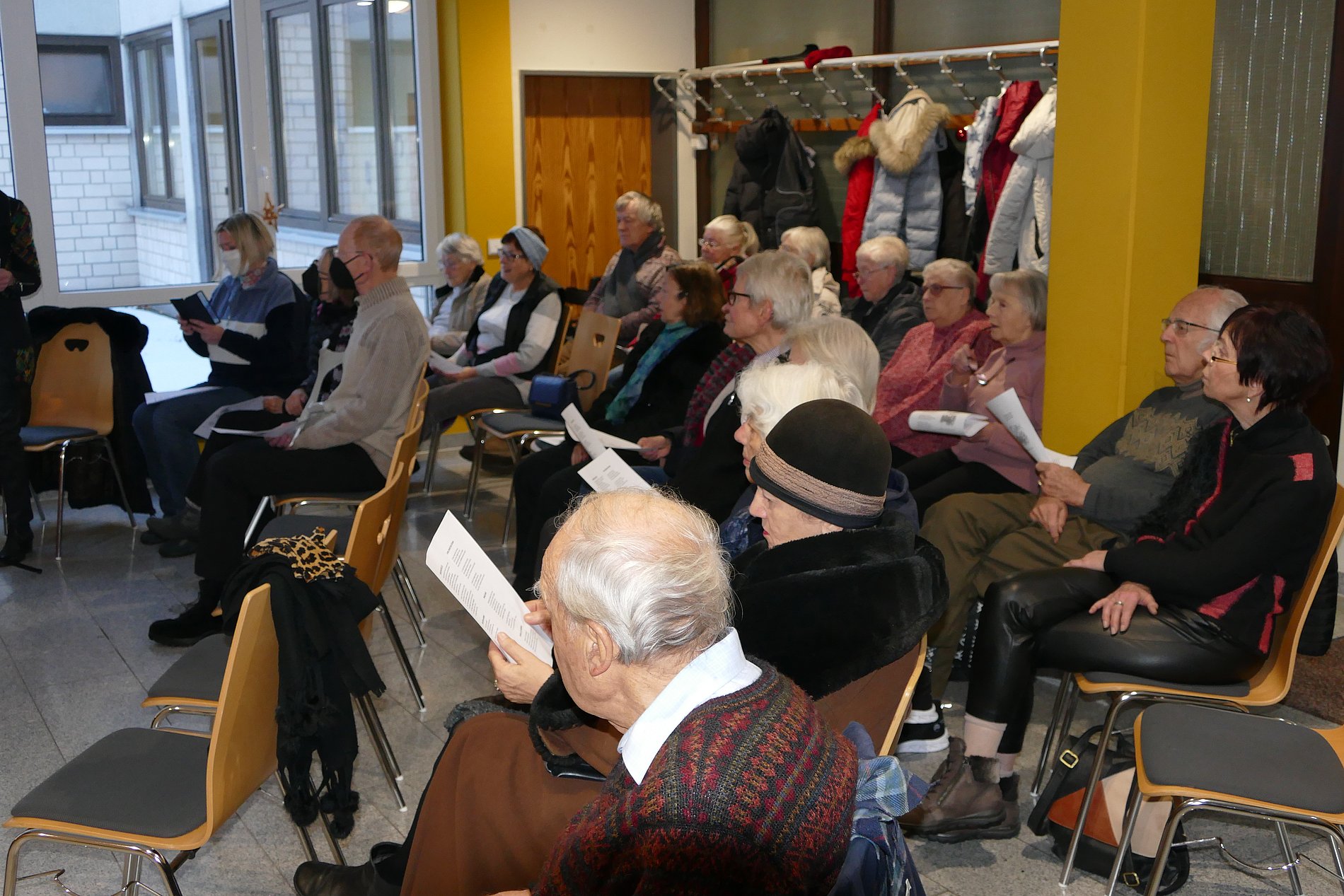 Diese kleine Anekdote erzählte Frau Küter, die Leiterin der Flötengruppe, zur Einstimmung in das kleine vorweihnachtliche Konzert, das in diesem Jahr nach Corona endlich wieder im Foyer des Gemeindezentrums St. Klara stattfinden konnte. Leider hat die Corona-Zeit mit ihren Einschränkungen bewirkt, dass in diesem Jahr keine Flöten-Kinder das Programm bereichern konnten, was allseits bedauert wurde.