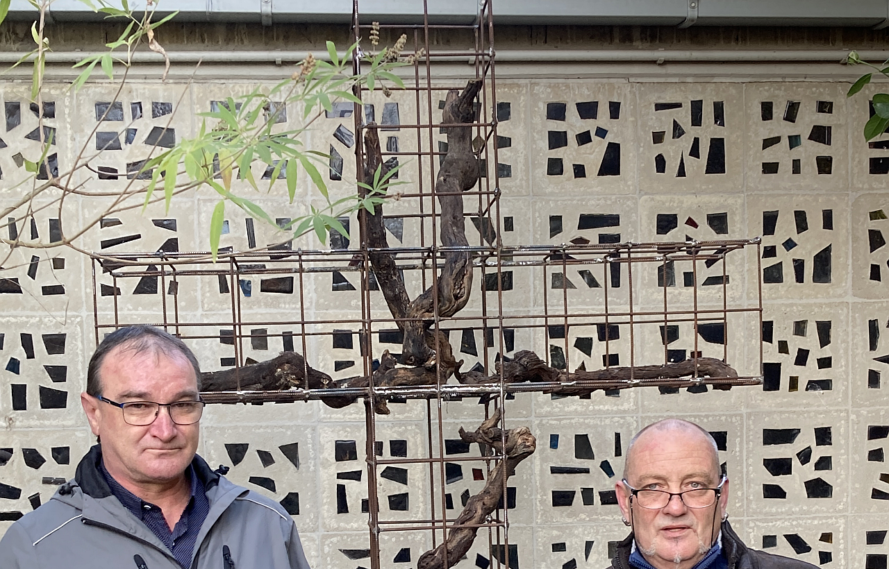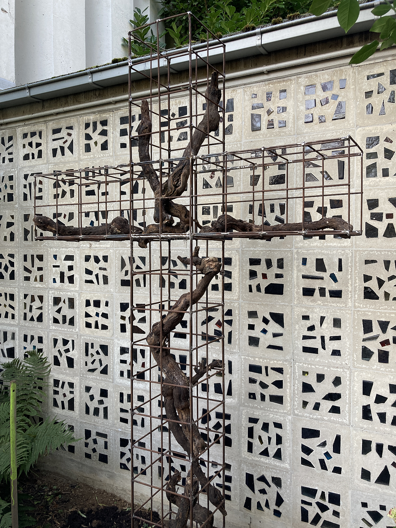Noch deutlicher wird das durch die Gestaltung des Inneren, der Mitte. Angeschwemmtes Holz oder wie im Moment hier ausgerissene Rebwurzeln sind wiederrum ein Hinweis auf die Vergänglichkeit auch unseres Lebens.