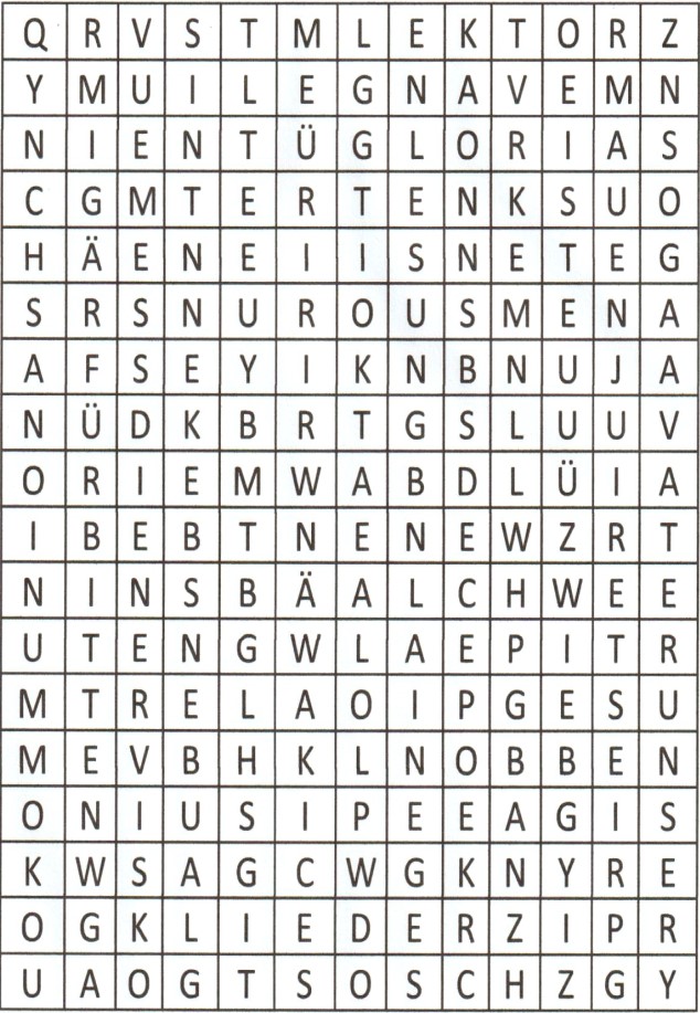 In diesem Buchstabensalat haben sich 17 Begriffe aus der Heiligen Messe versteckt.