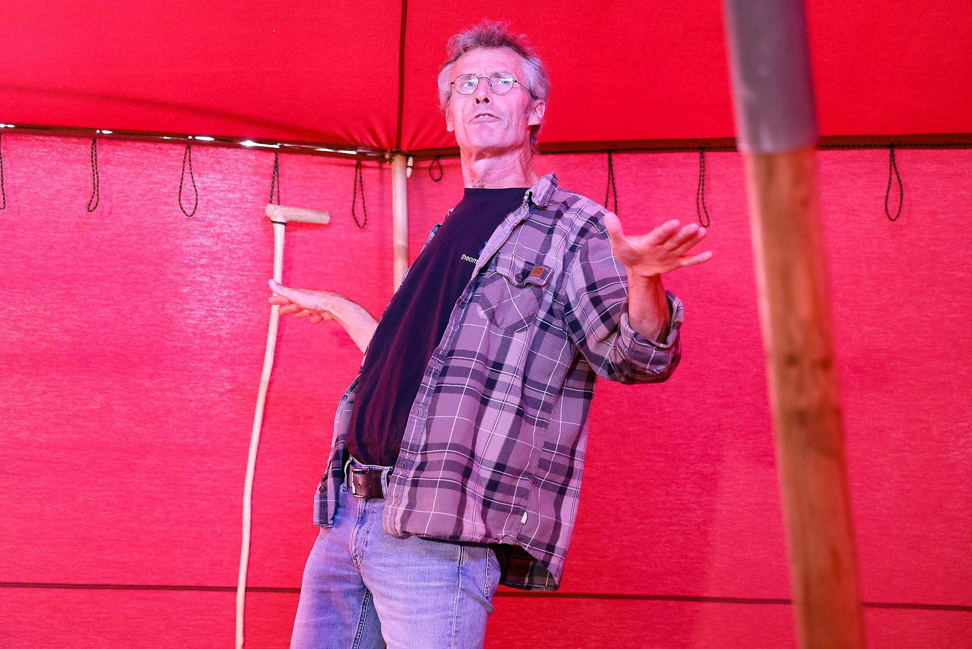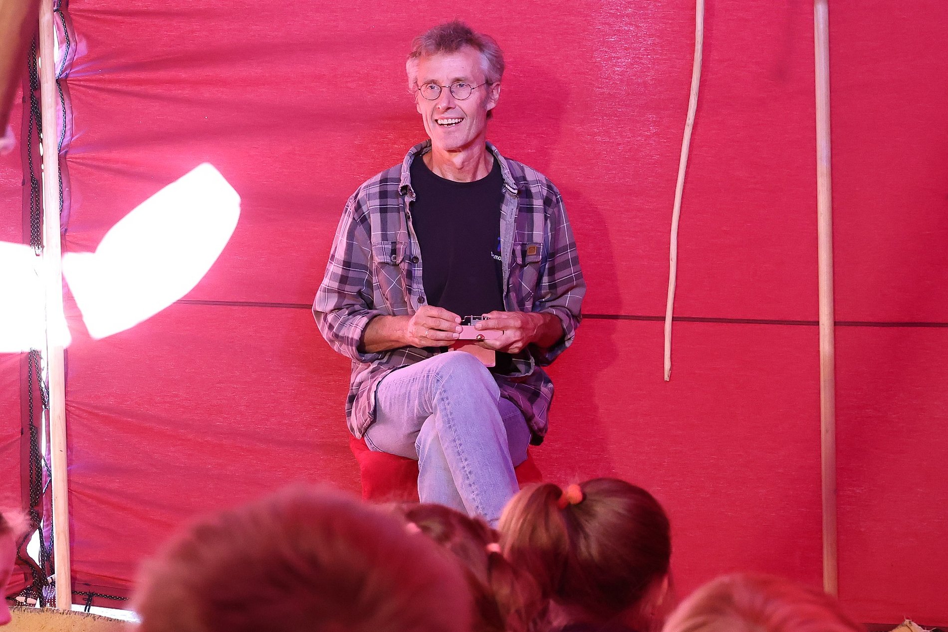 Vielen verschiedenen Geschichten hat der Erzählkünstler Thomas Hoffmeister-Höfener im roten Erzählzelt Leben eingehaucht, je nachdem welche Menschen er vor sich hatte: mal waren das Kita-Gruppen, mal Schulklassen, mal eine gemischte Gruppe aus Kindern und Erwachsenen, mal Erwachsene am Abend. Den Abschluss bildete die Erzählung der „Speisung der Fünftausend“ mit den fünf Broten und zwei Fischen im Familiengottesdienst am Sonntag, den 25.09. in der Kirche St. Peter und Paul.