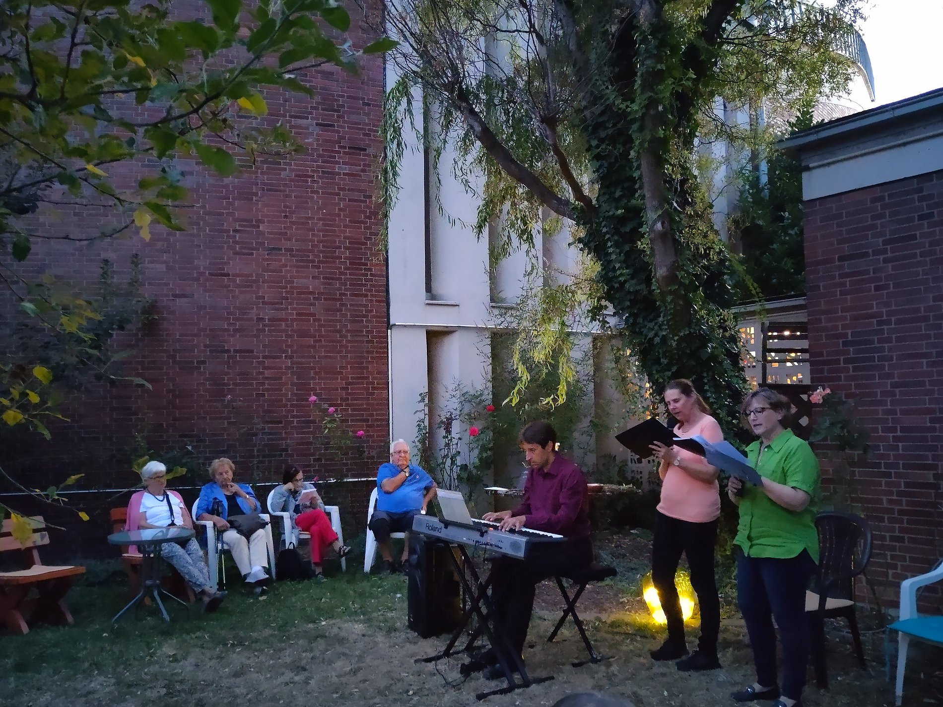 Mitwirkende waren u.a.: an E-Piano und Orgel - Roman Bär, begleitet von einer Violine - Daria Spiridonova, beim Gesang - Marianne Brantzen und Ute Löffler, bei der Gestaltung der Meditationen und des Abendgebetes stellvertretend für Viele - Gaby Socher-Schulz und Elisabeth Kessels.