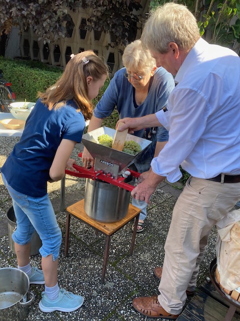 Nun stehen ca 30 Liter Traubensaft zum Gären bereit und vielleicht gibt es 2023 den ersten Bibelgartenwein.