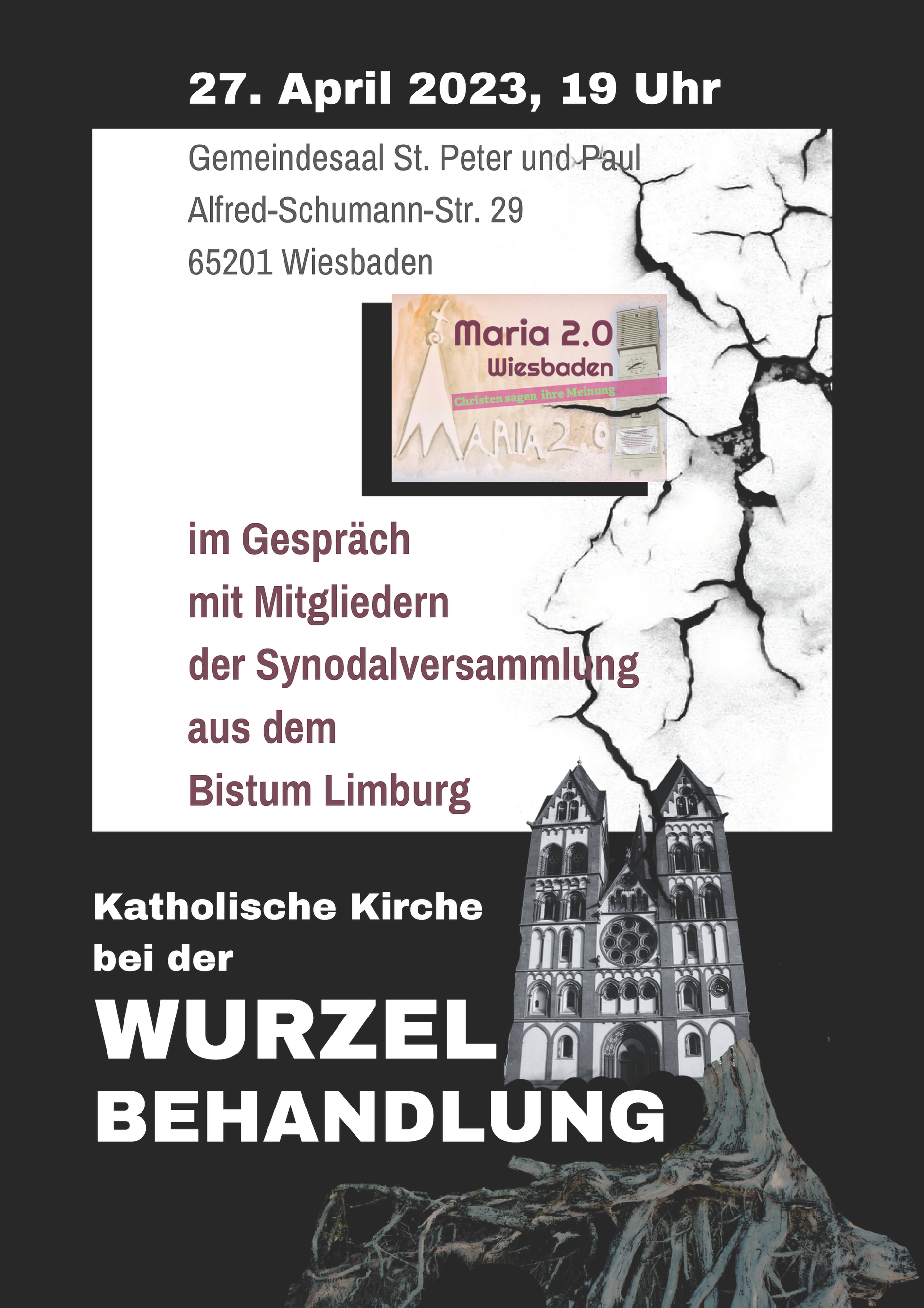 Darüber wollen wir mit Mitgliedern der Synodalversammlung und Ihnen allen sprechen bei unserer Soirée am 27. April 2023 um 19:00 Uhr im Gemeindesaal von St. Peter und Paul Schierstein