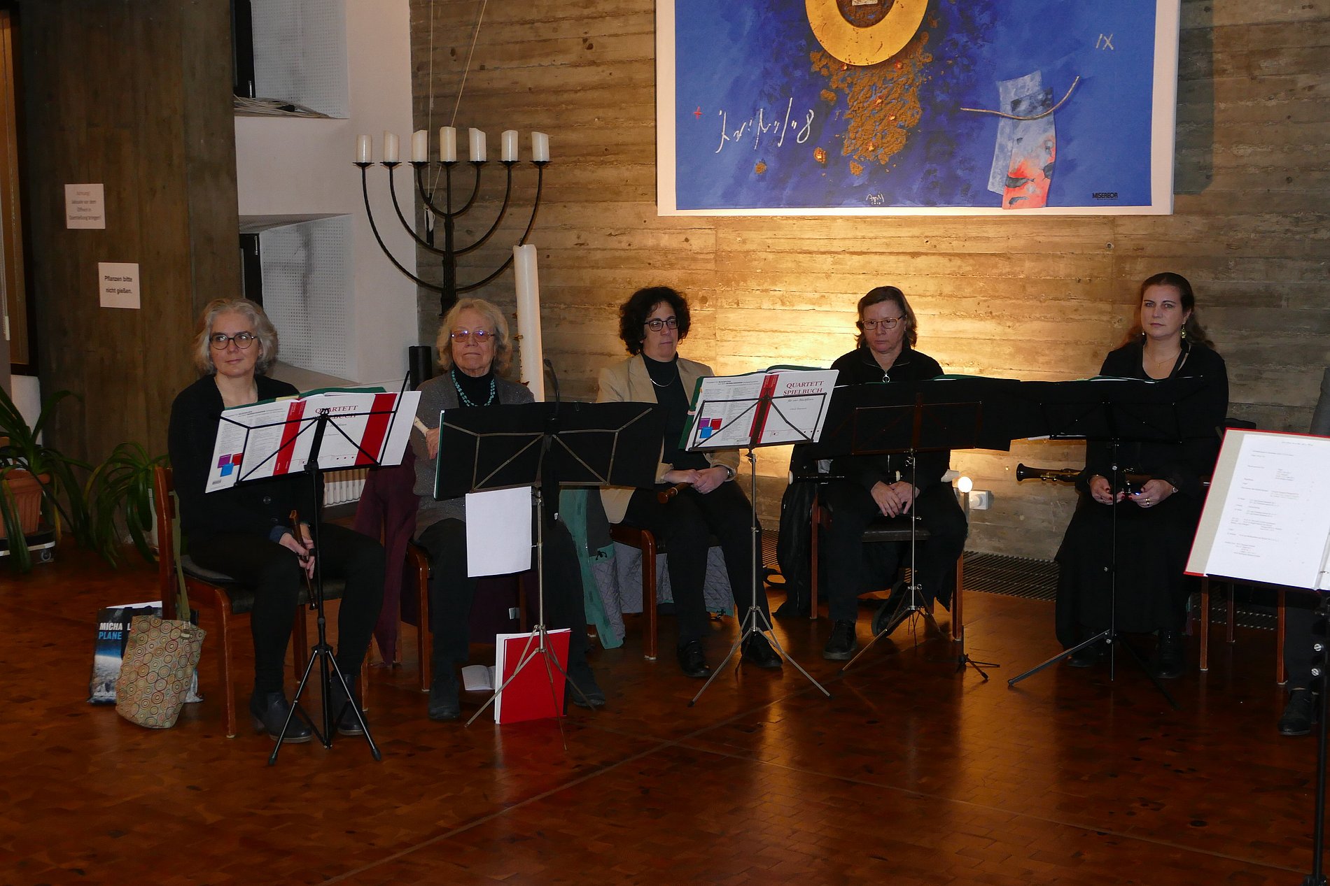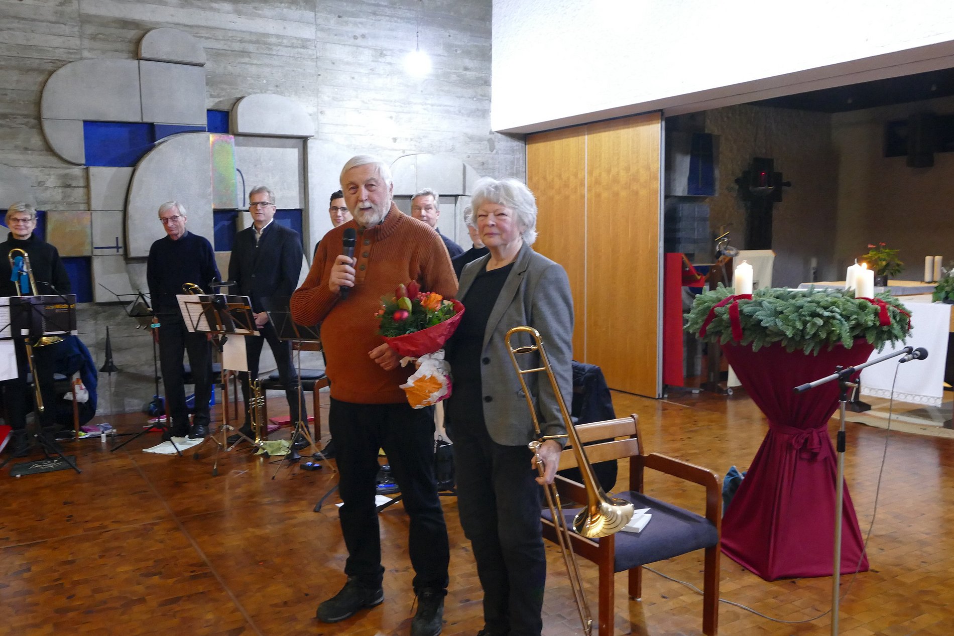 Für die Ermöglichung und Unterstützung des Konzerts überreichte Frau Mohr namens der Musiker dem Ehepaar Rollig ein kleines Präsent. Auch Frau Mohr erhielt für die musikalische Leitung und Frau Rollig für die Lesung als Dankeschön ein Präsent – einen bunten, adventlichen Blumenstrauß.