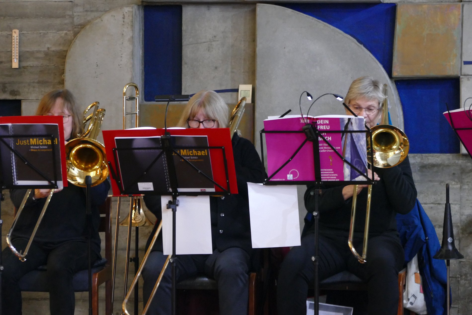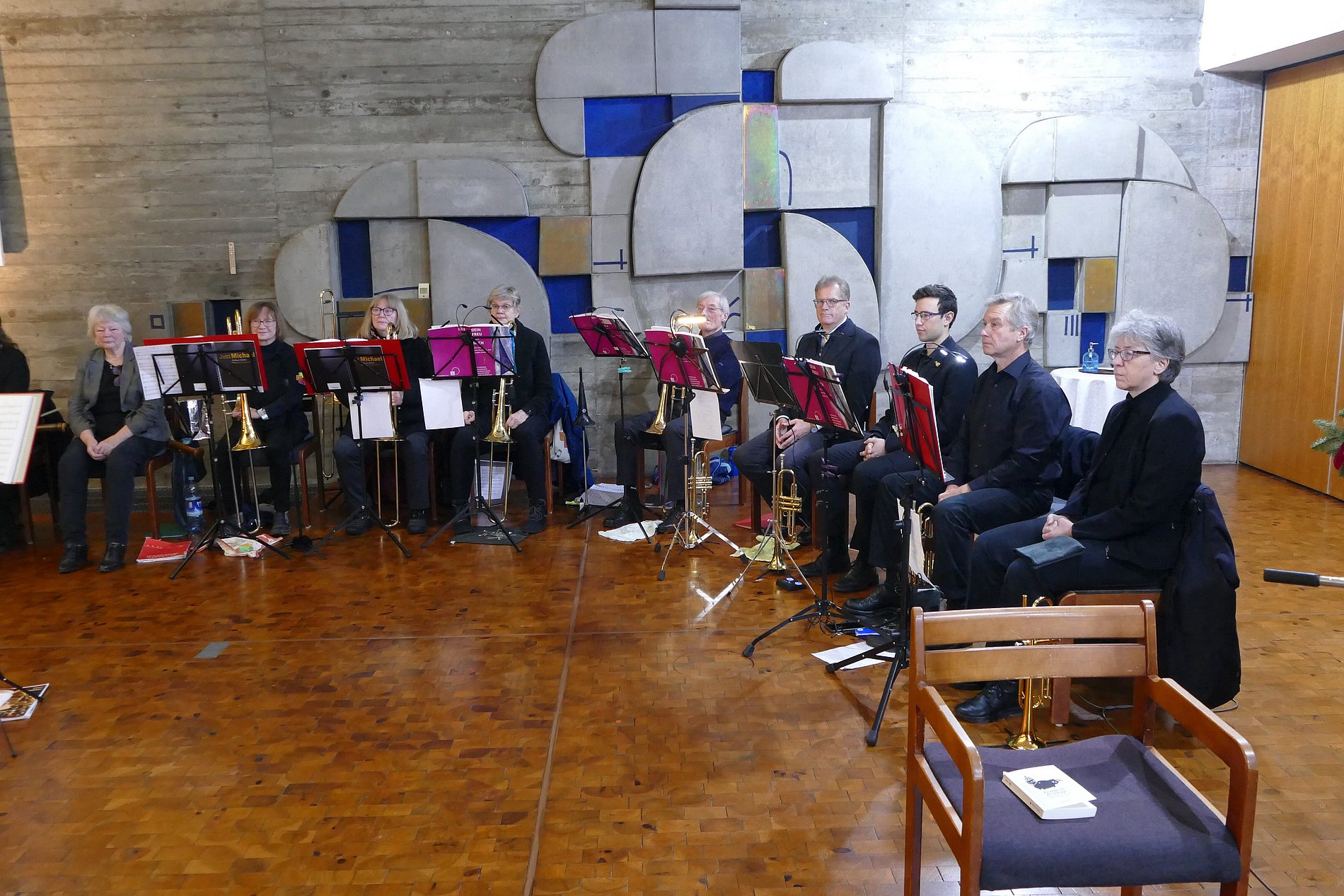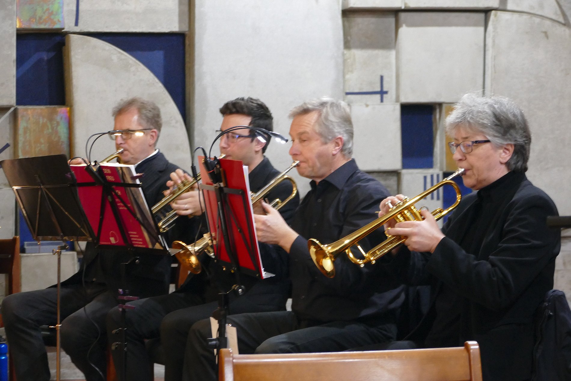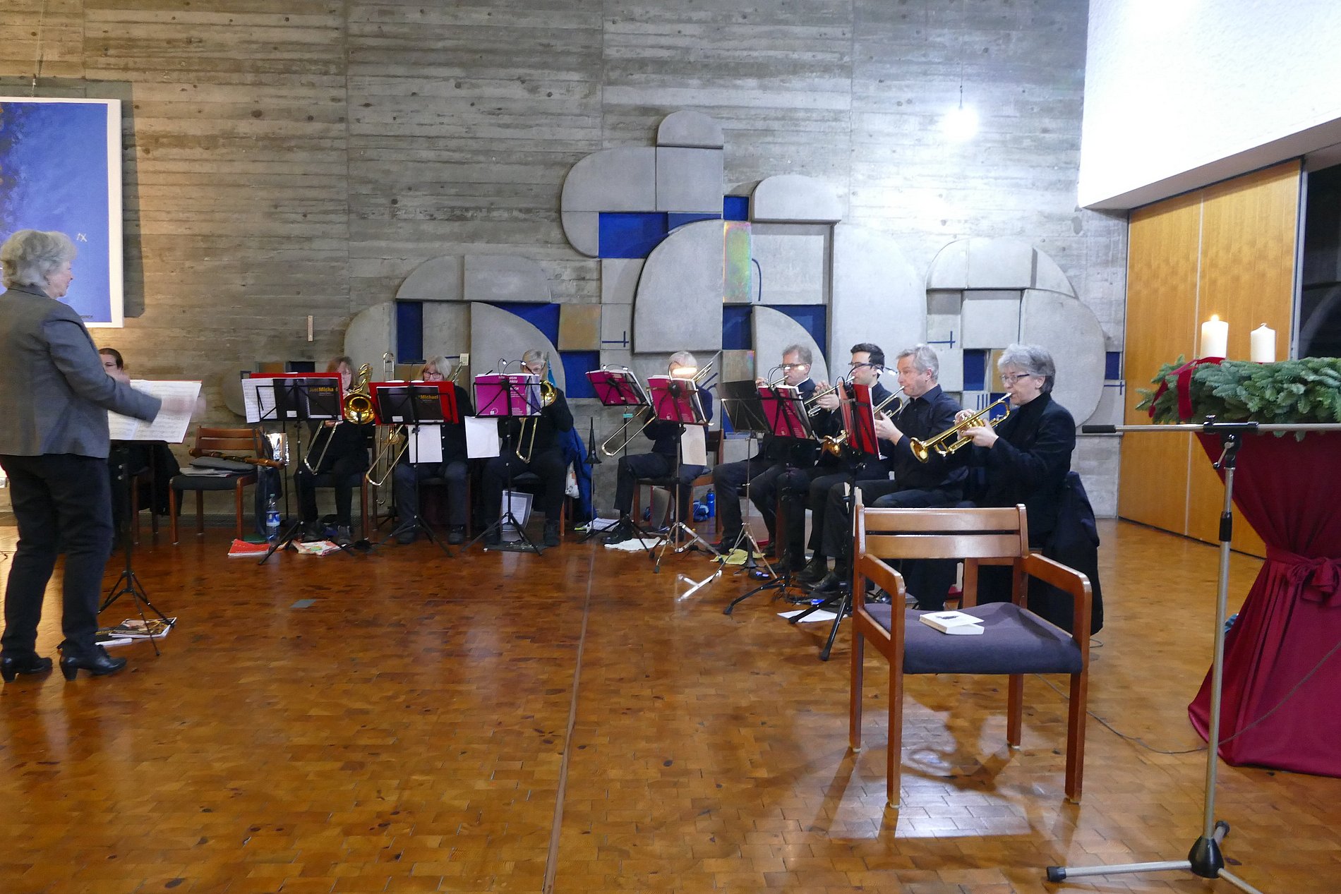 Blechblasinstrumente wie Posaune oder Trompete erzeugen zumeist laute, Holzblasinstrumente wie Blockflöten hingegen leise, warme Töne. Kann das gutgehen, wenn beide aufeinander treffen? So geschehen am 2. Advent in St. Klara. Und vorweg gesagt: es ergab ein sehr harmonisches Weihnachtskonzert.