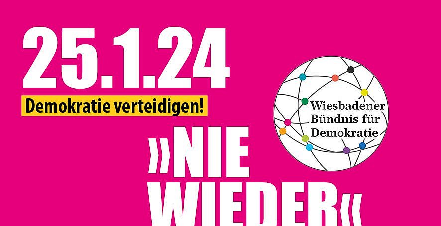 Am Donnerstag, 25. Januar 2024, 18:00 Uhr, wird auf dem Bahnhofsvorplatz in Wiesbaden eine Kundgebung unter dem Motto „Demokratie verteidigen – Nie wieder ist jetzt!“ stattfinden, gefolgt von einer anschließenden Demonstration bis zum Dernschen Gelände.