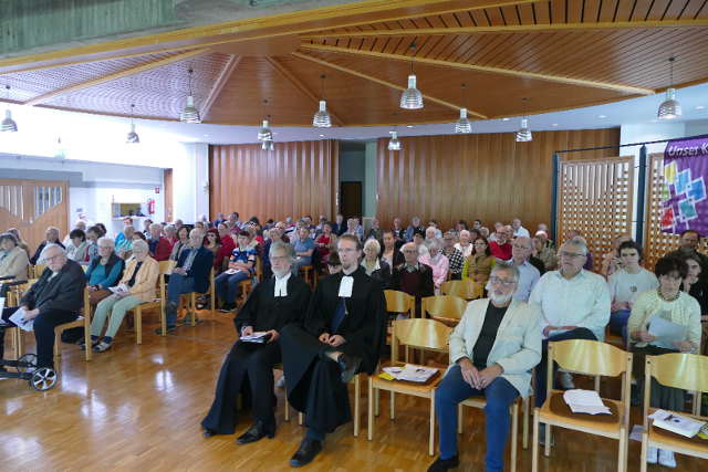 Warum dies nicht auch in einem Gemeindezentrum, am besten ökumenisch? Da auf evangelischer Seite der neue Nachbarschaftsraum im Werden ist, wurden gleich die Christinnen und Christen auch dieser Gemeinden zu einem ökumenischen Gottesdienst mit anschließendem Vatertags-Frühschoppen nach Klarenthal eingeladen, um sich über die Gemeindegrenzen einmal näher kennenzulernen.