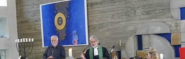 Es wurde ein im wahrsten Sinne des Wortes bewegender Gottesdienst, denn sowohl die Kinder als auch die Erwachsenen waren gefordert, beim Kehrvers des Psalm-Gebets sich selbst zu umarmen und die Hände über den Kopf zu halten: „von allen Seiten umgibst du mich und hältst deine Hand über uns“. Und alle machten begeistert mit.