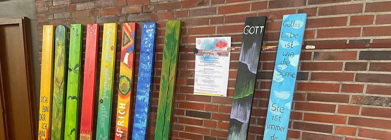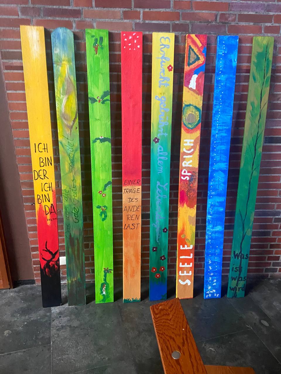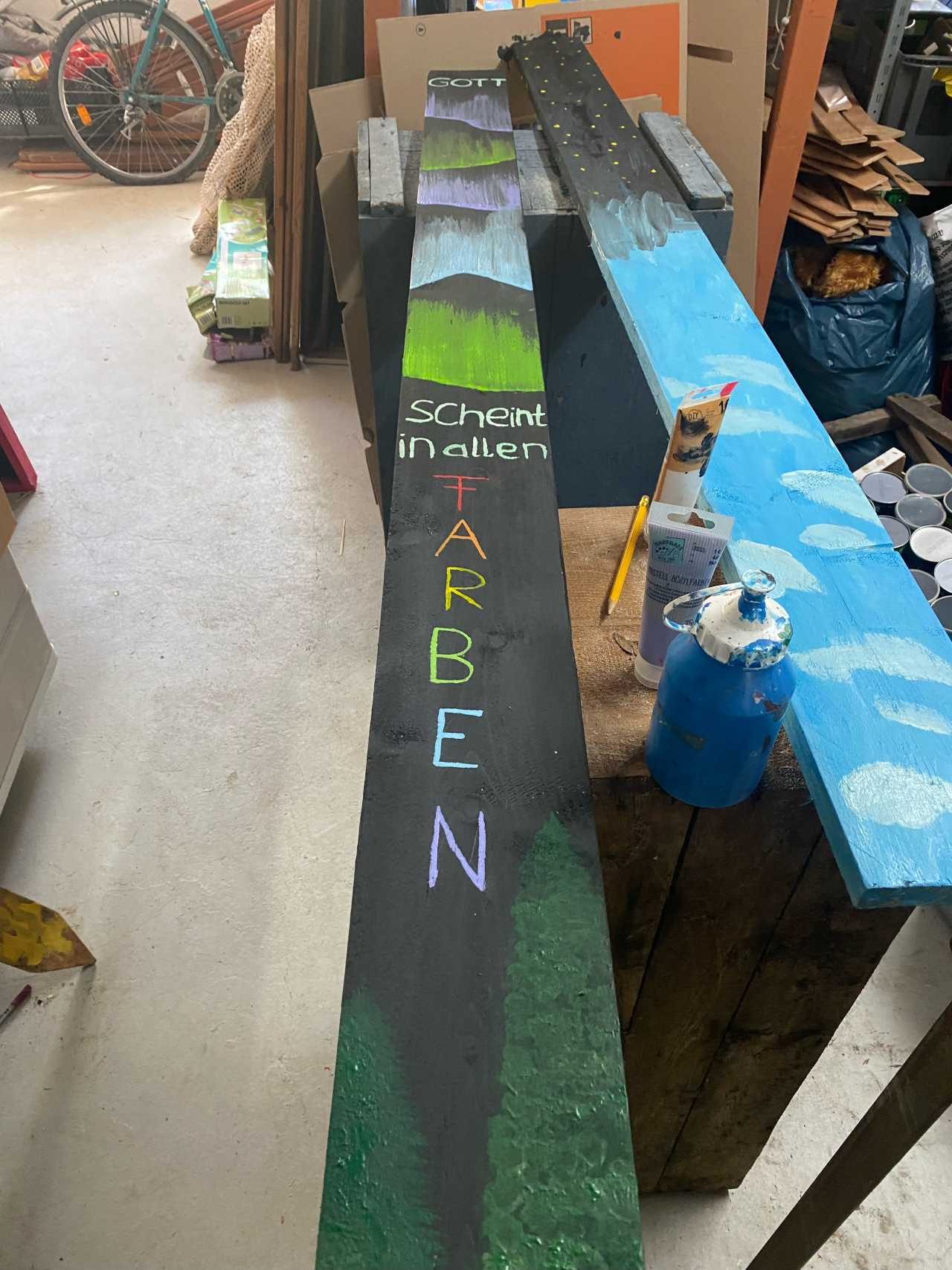 Am 13. Juli 2024 wurden die Seelenbretter gemalt, sie nun den Bibelgarten in St. Peter und Paul bereichern.