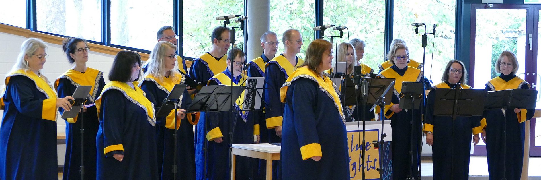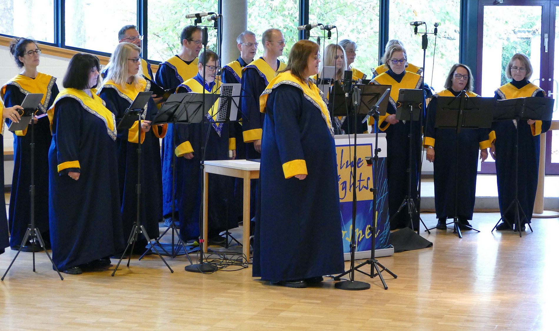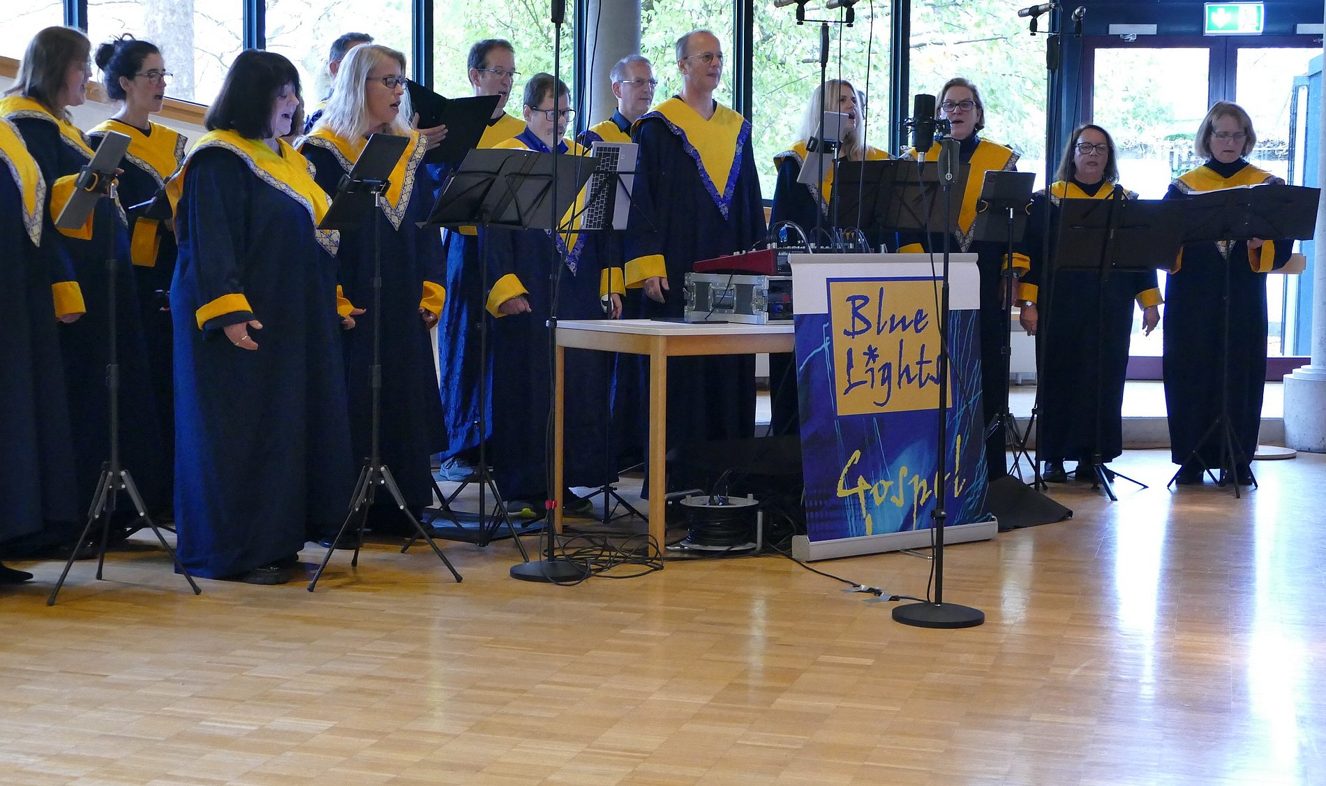 Zum Schluss des Gottesdienstes – nach dem Dank an den Chor für seine mitreißende Musik – intonierten die „Blue Lights“ „Oh happy day“ und luden die Gottesdienstgemeinde ein, mit zu singen und mit zu klatschen – ein toller stimmungsvoller Ausklang dieses gelungenen ökumenischen Gottesdienstes.