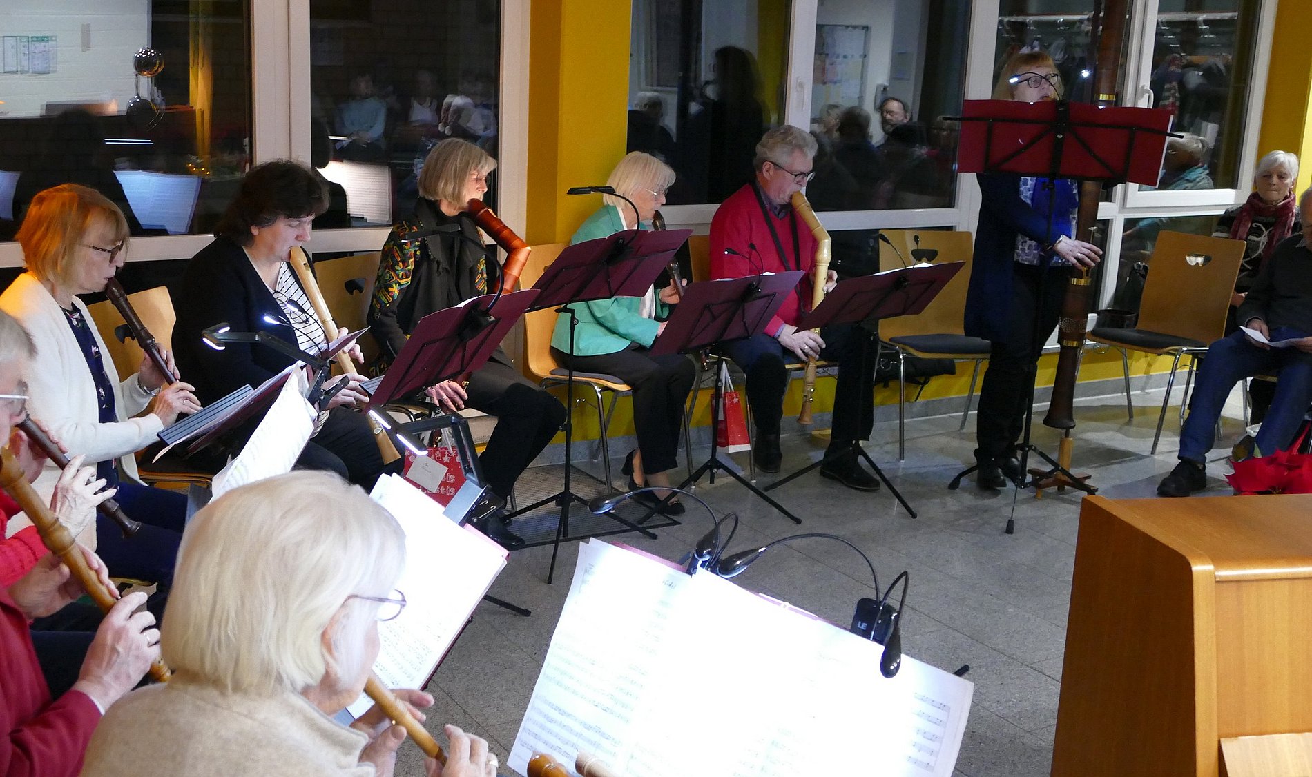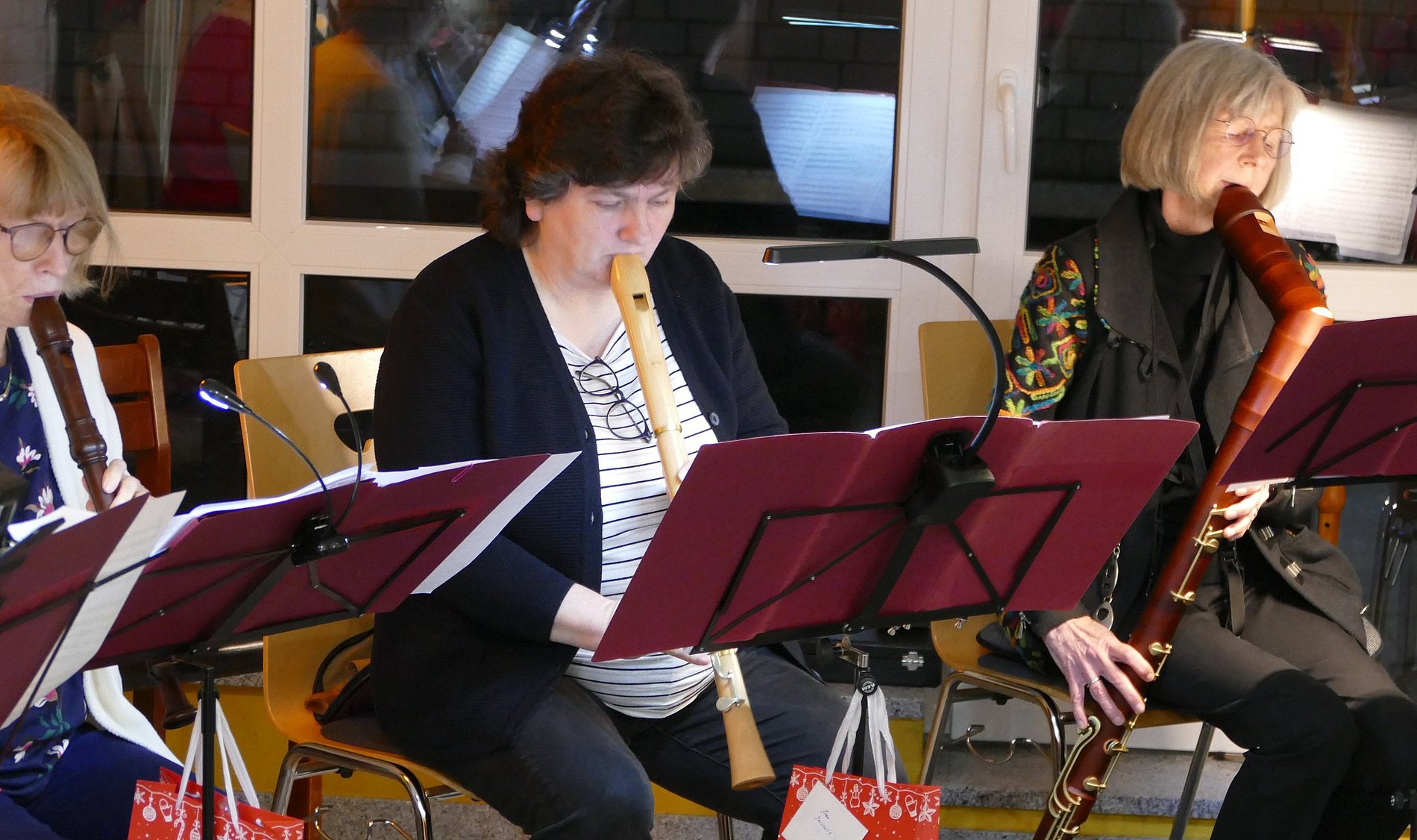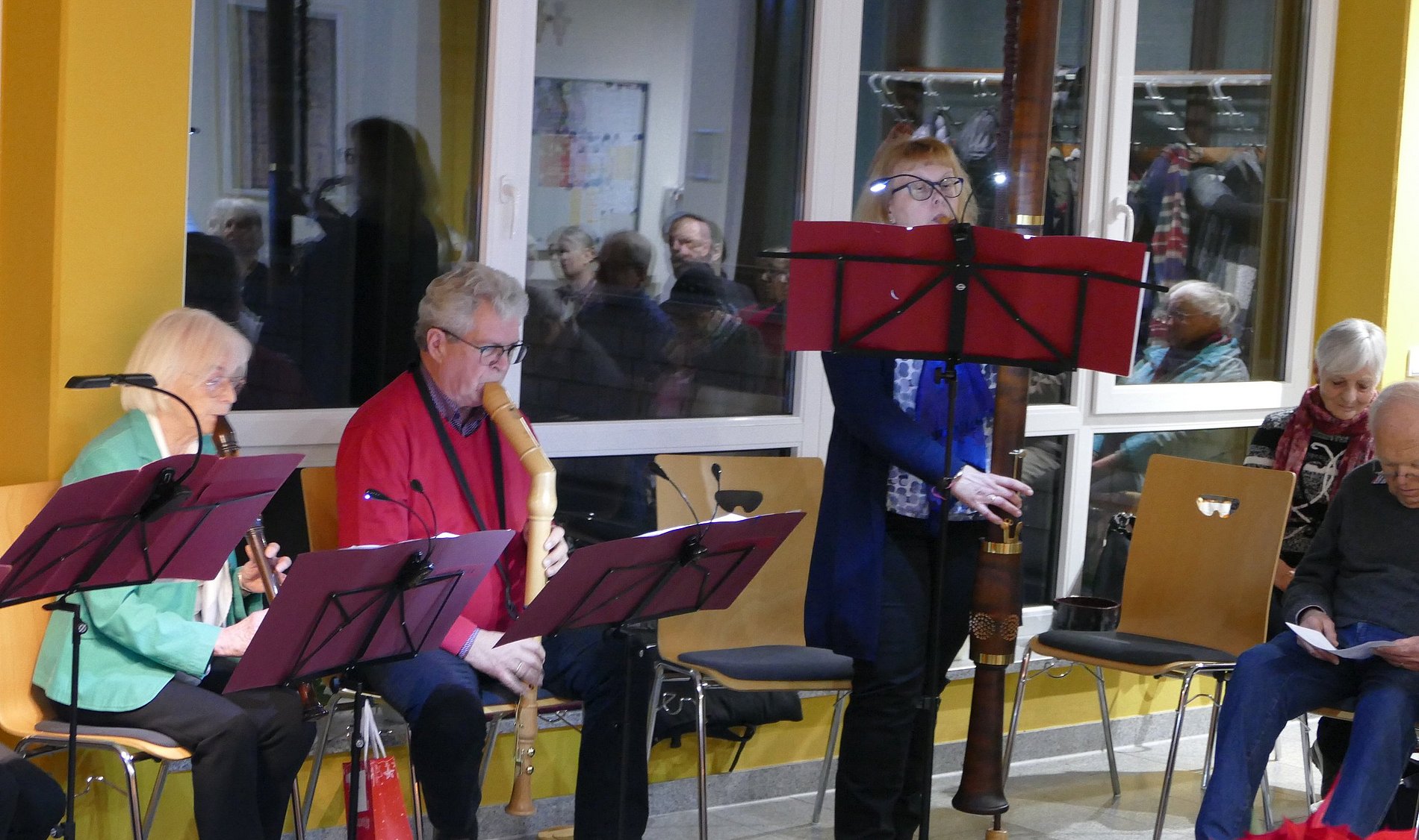 Frau Küter hatte mit den Musikern wieder eine ganze Reihe vorweihnachtlicher Konzertstücke eingeübt. Auf dem Programm standen: Ricercar pro Tempore Adventus von Fischer, die Siciliana von Händel, die Aria Pastorale von Rathgeber, die Schlittenfahrt von Rosenheck, die Weihnachtshymne von Mendelsohn und die Weihnachtsmusik von Bach. Es wurde wunderbare Flötenmusik dargeboten, für die sich das Publikum mit viel Beifall bedankte.