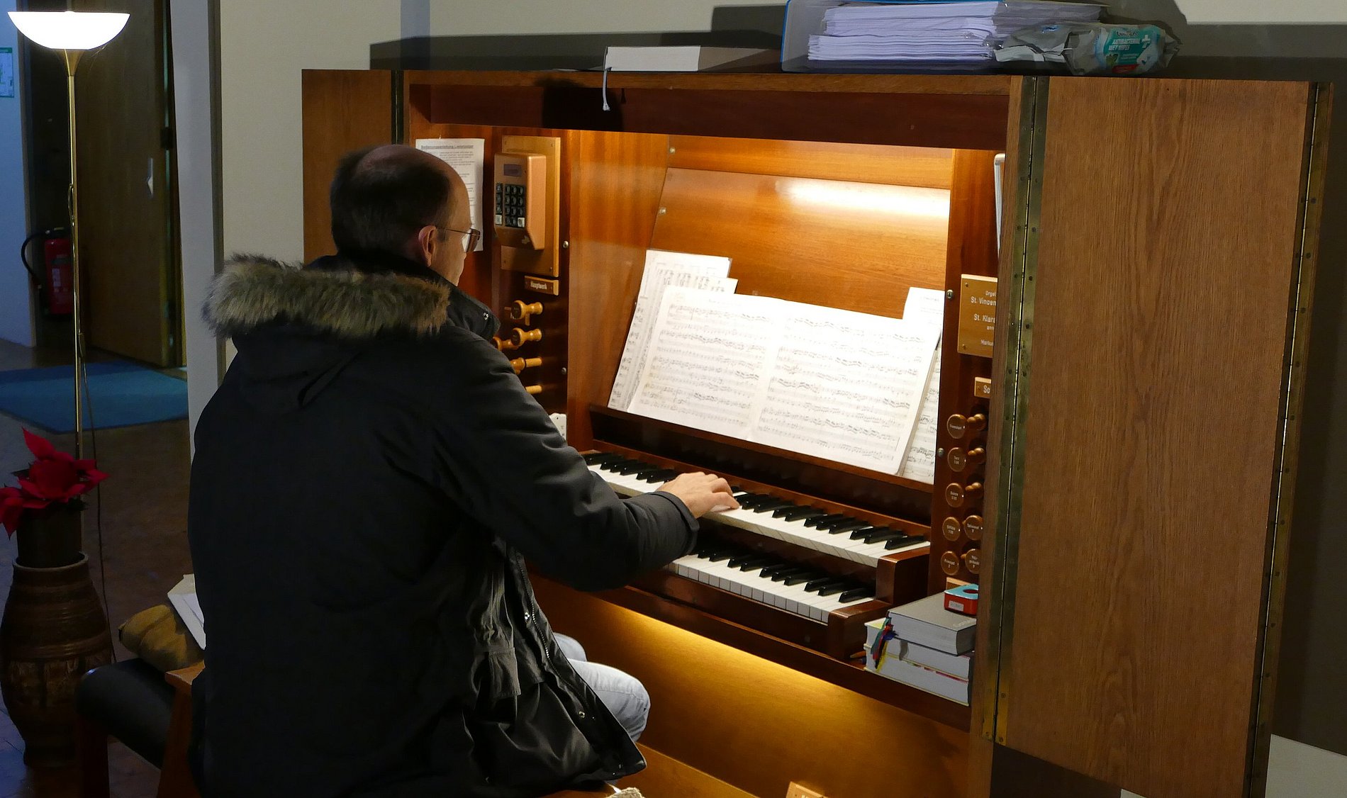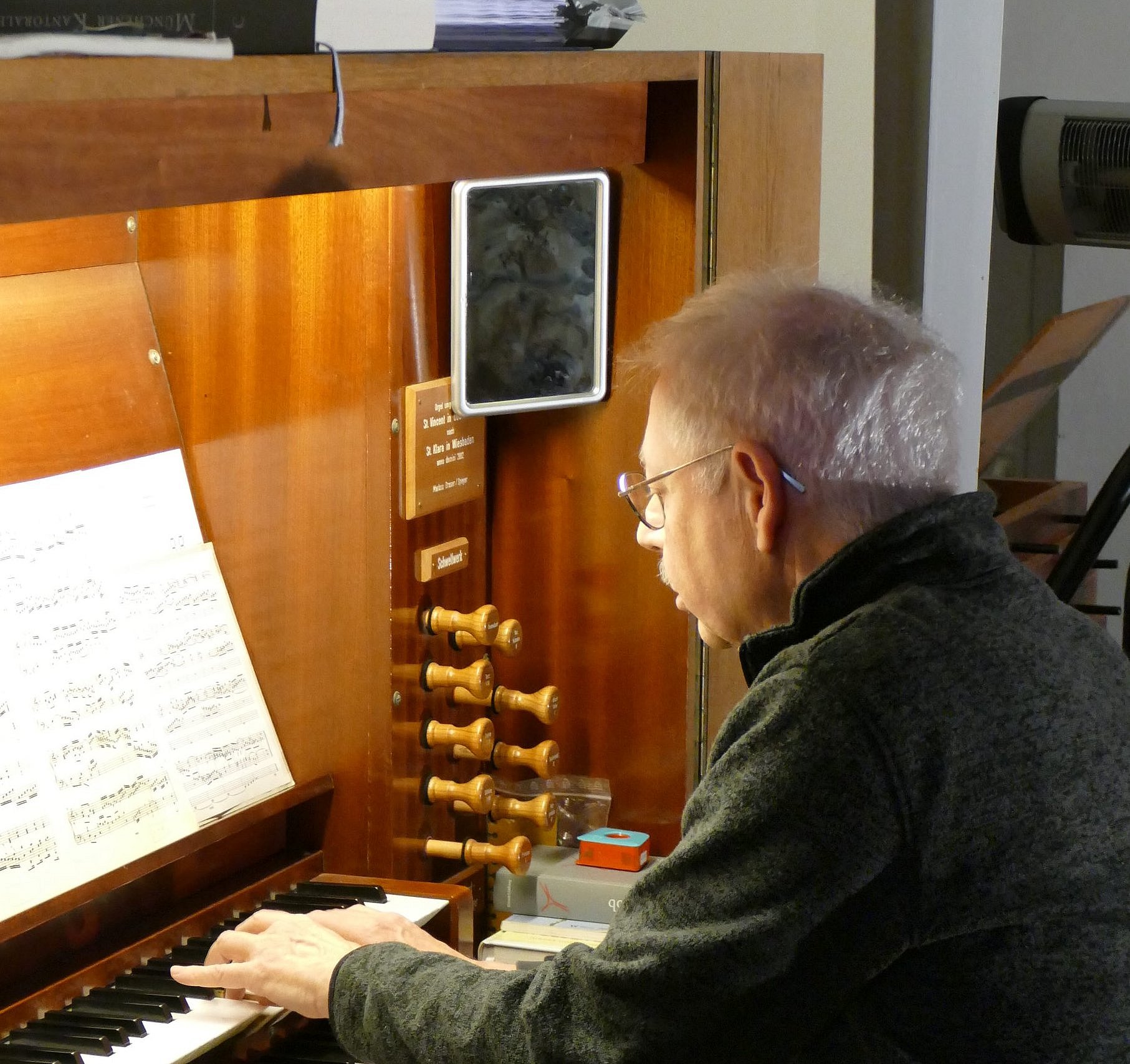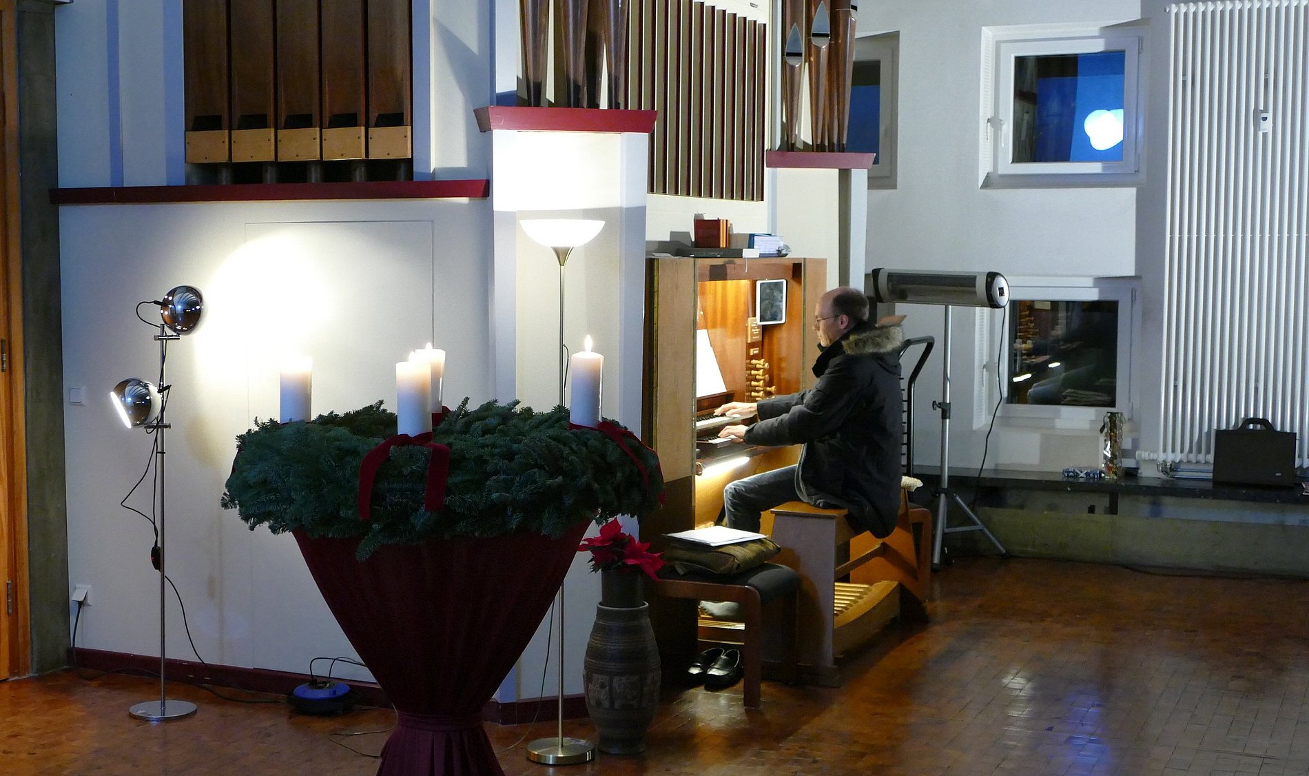 Dass St. Klara aufgegeben und nach dem Umzug der Gemeinde die Orgel verkauft und abgebaut werden soll, weiß mittlerweile jeder in der Gemeinde. Nur wann das sein wird, kann niemand sagen. Ursprünglich im Sommer 2025 erwartet, verschob sich der Umzugstermin in den Herbst, in den Winter und es ist zu befürchten, dass es wieder Sommer werden könnte. Schon länger geplant wollte sich die Gemeinde am 4. Advent mit einem kleinen Konzert von ihrer Orgel verabschieden, auch wenn sie uns noch bis zum Umzug die Gottesdienste verschönern wird.