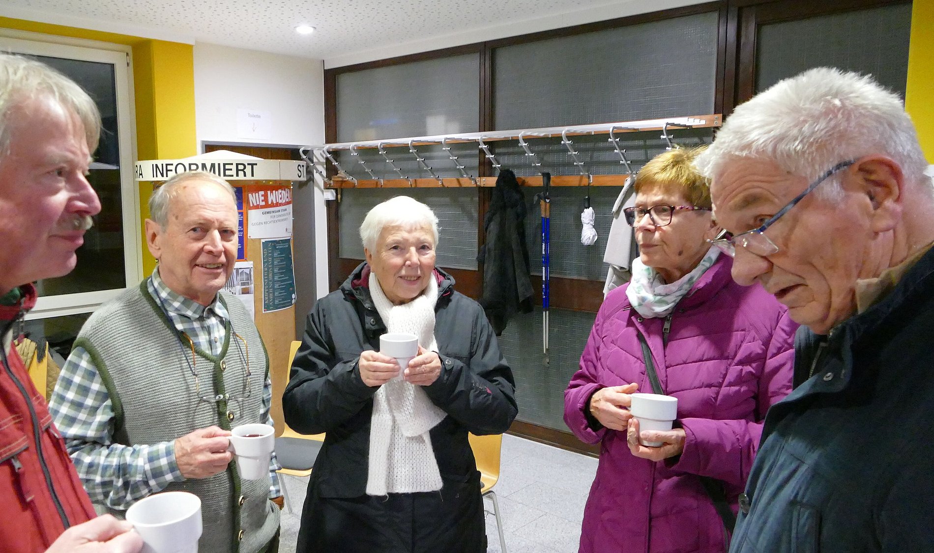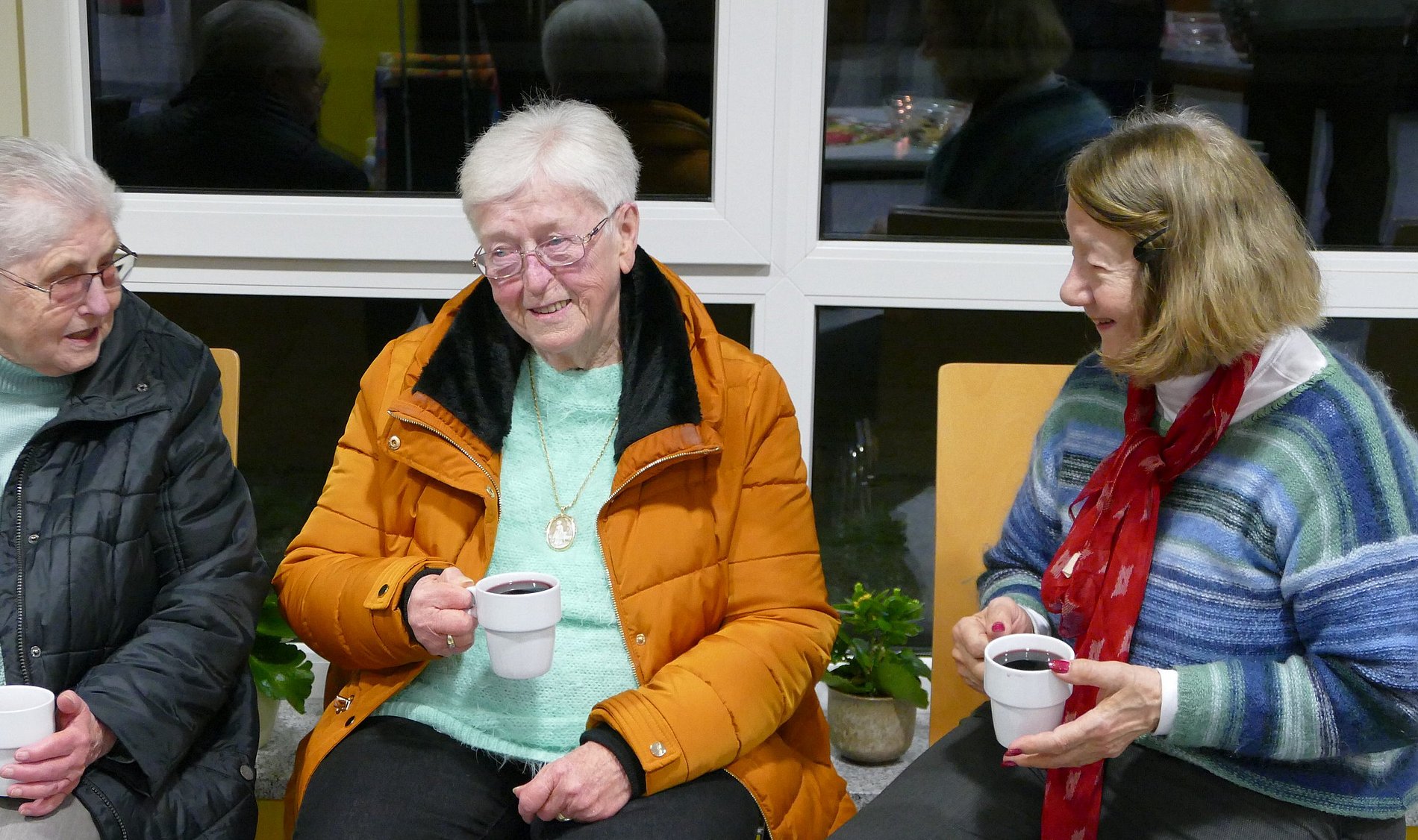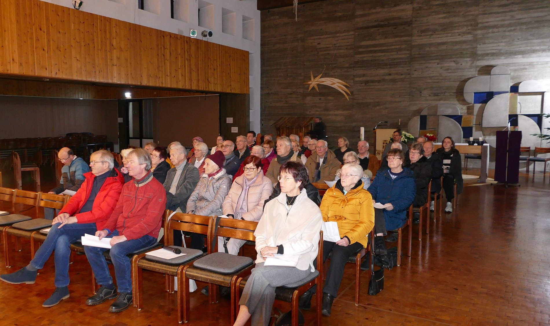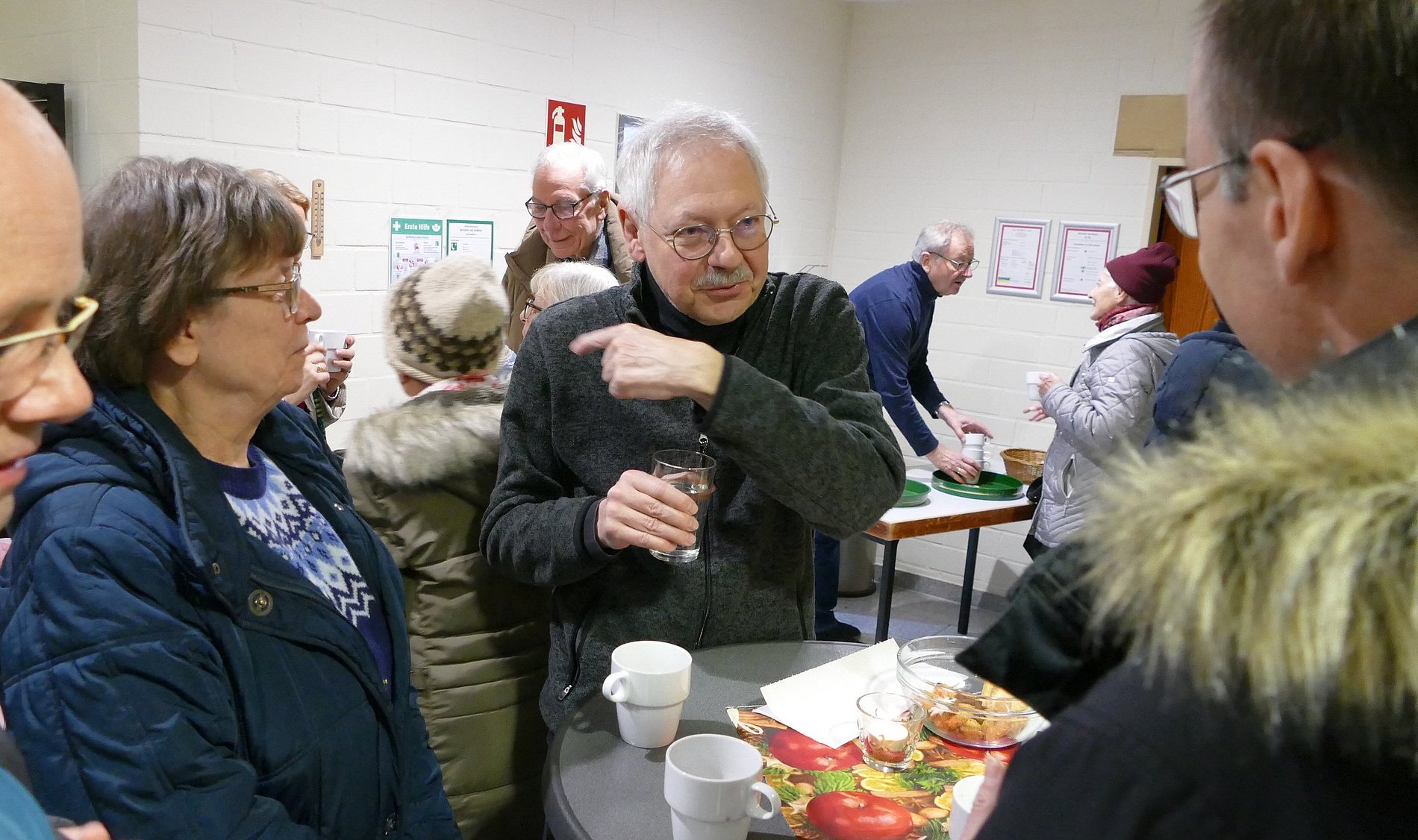 Das Thermometer in der Kirche zeigte nur 12 Grad. So waren die zahlreichen Besucher froh, dass der Festausschuss von St. Klara zum Aufwärmen Glühwein, Kinderpunsch und Weihnachtsplätzchen vorbereitet hatte. So stand man im warmen Foyer noch gut eine Stunde zusammen und pflegte die Kommunikation.
