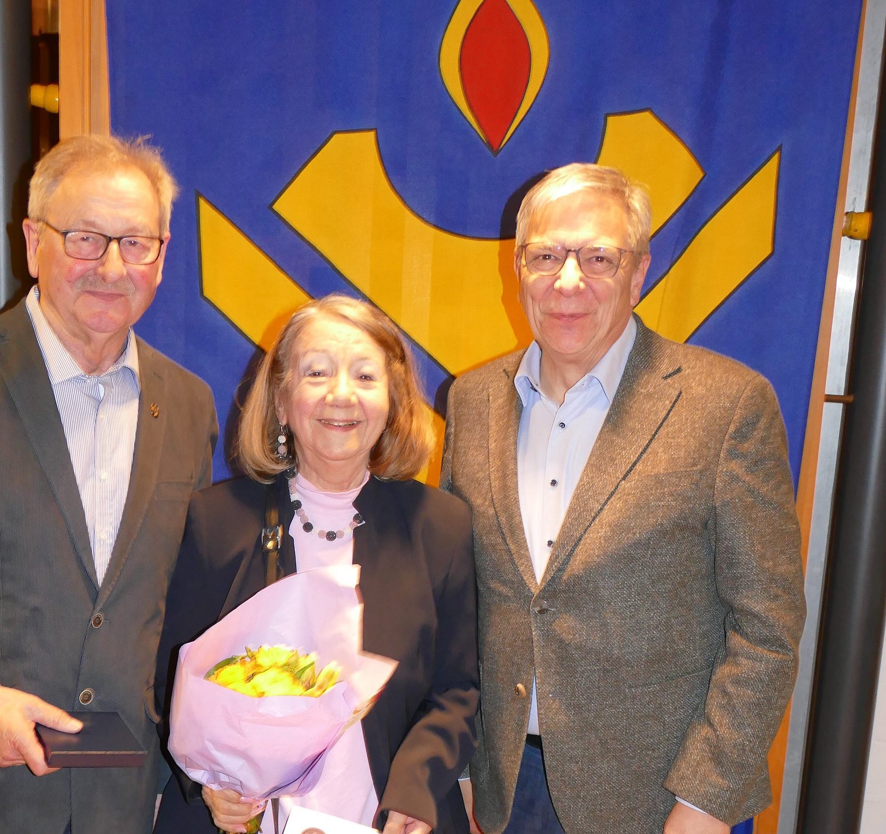 In diesem Jahr konnten am 27. März 2026 die begehrten Medaillen Gertraud Kuba und Anton Nowak aus unserer Gemeinde und Eva Ludwig von der SPD aus den Händen von Ortsvorsteher Michael Koch entgegennehmen. Dr. Rollig stellte in seiner Laudatio die beiden zu Ehrenden aus St. Klara als langjährige, verlässliche Mitarbeiter vor, die nicht im Rampenlicht stehen, sondern über viele Jahre hinweg ihren wertvollen Dienst mehr im Verborgenen leisten.