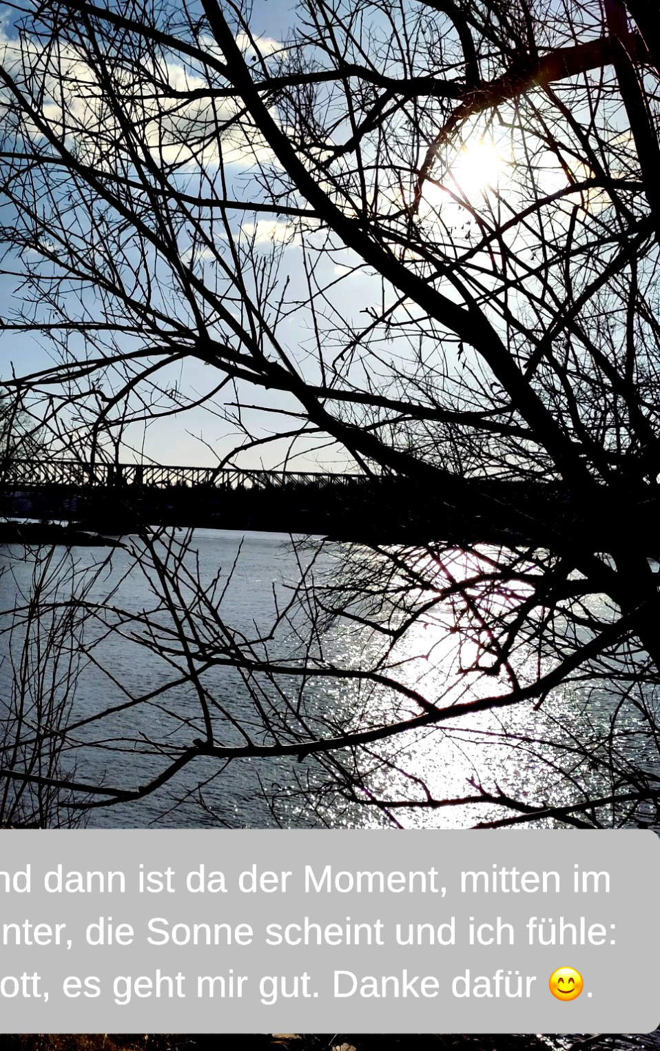 „Und dann ist da der Moment, mitten im Winter, die Sonne scheint und ich fühle: Gott, es geht mir gut. Danke dafür.“