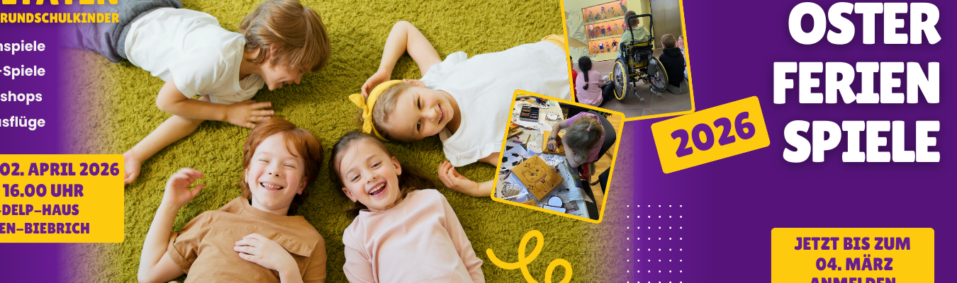 Gemeinsam Zeit verbringen, miteinander spielen, bas-teln, rätseln, einen Ausflug machen, den hessischen Landtag besuchen, bowlen gehen und Gründonnerstag feiern. Das und noch viel mehr, möchten wir mit Dir und Deinen Freunden bei den Ferienspielen vom 30. März bis zum 02. April 2026 im Alfred-Delp-Haus in Wiesbaden-Biebrich (Gibb) erleben.