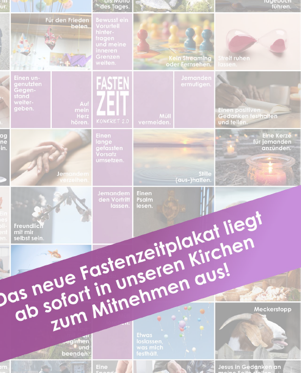 Die Fastenzeit als „Anders“-Zeit erleben. Bewusst mein Leben bedenken und Gewohnheiten, die mich in eine Sackgasse führen ändern: dafür ist die Fastenzeit, die von Aschermittwoch bis Ostern jetzt ansteht, eine be-währte Zeit. Viel kann uns dabei helfen. Aus der Tradition heraus kann das beispielsweise, das Verzichten auf Fleisch, Süßigkeiten oder Alkohol sein, das einmalige Sattessen an Aschermittwoch und Karfreitag, das machen einer Fastenspende oder das Empfangen einer Beichte, als inneres und äußeres Zeichen meiner Umkehr. Darüber hinaus gibt es Angebote wie die „Exerzitien im Alltag“, Bußgottesdienste oder eben das Fastenplakat „Fastenzeit Konkret“, die bewusst Impulse geben zur Gestaltung dieser „40 Tage“. Gerne können Sie sich das neue Plakat „Fastenzeit Konkret 2.0“ aus den Kirchen mit nach Hause nehmen und anhand von 40 verschiedenen Anregungen jedem Tag eine besondere Prägung verleihen. Vielleicht fällt Ihnen auch eine andere Person ein, an die sie dieses weitergeben könnten.
